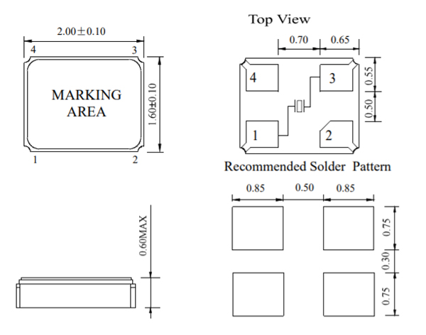 E1FB系列晶振外形尺寸图: