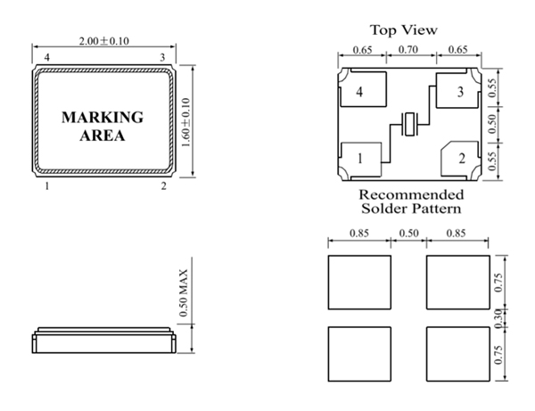 E1SB系列晶振外形尺寸图: