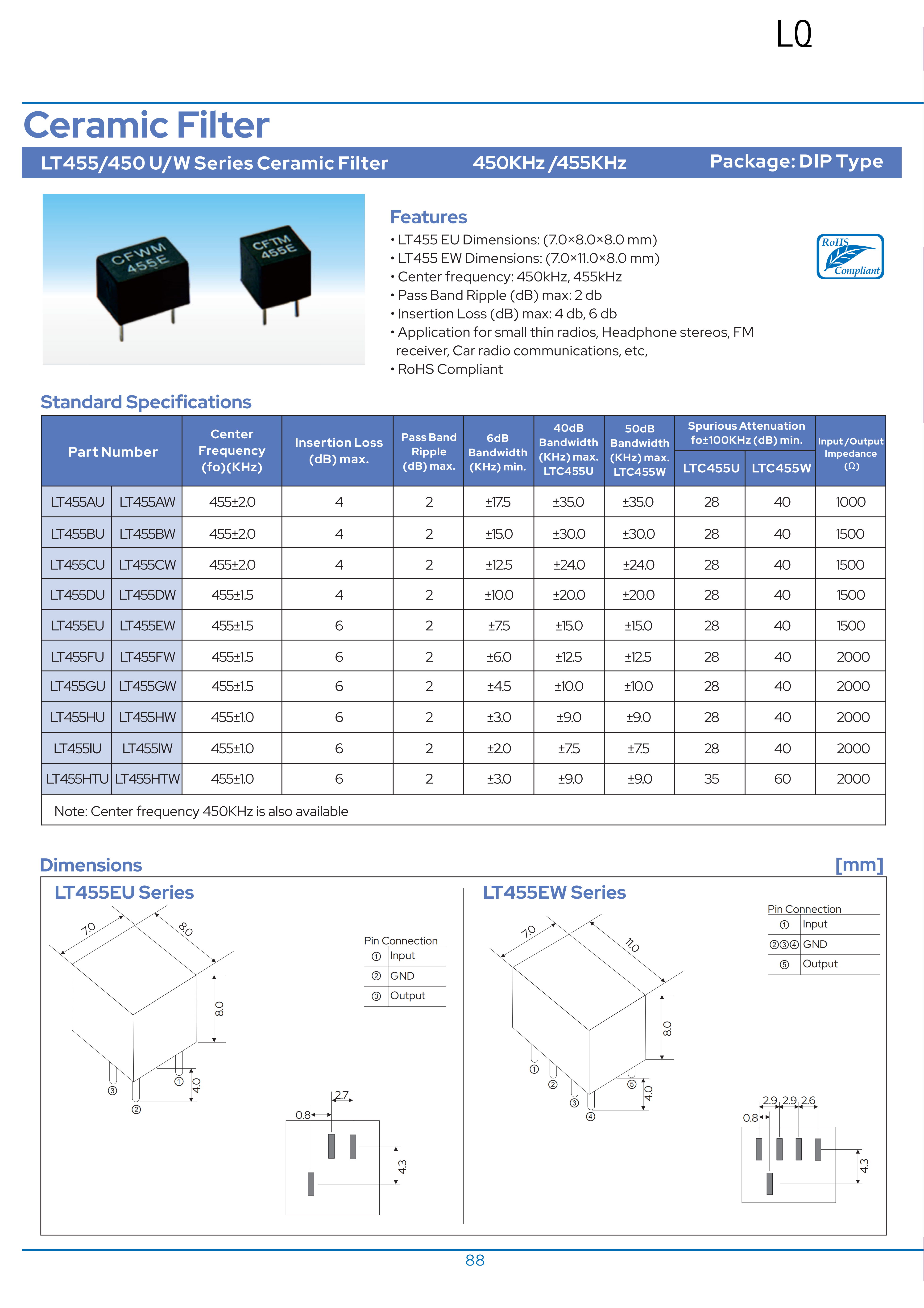 LT450/455U陶瓷滤波器