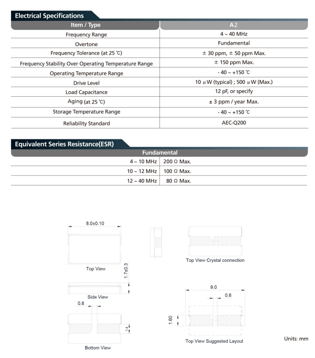 1. 可靠的玻璃密封陶瓷封装,尺寸8.0×4.5×1.7mm