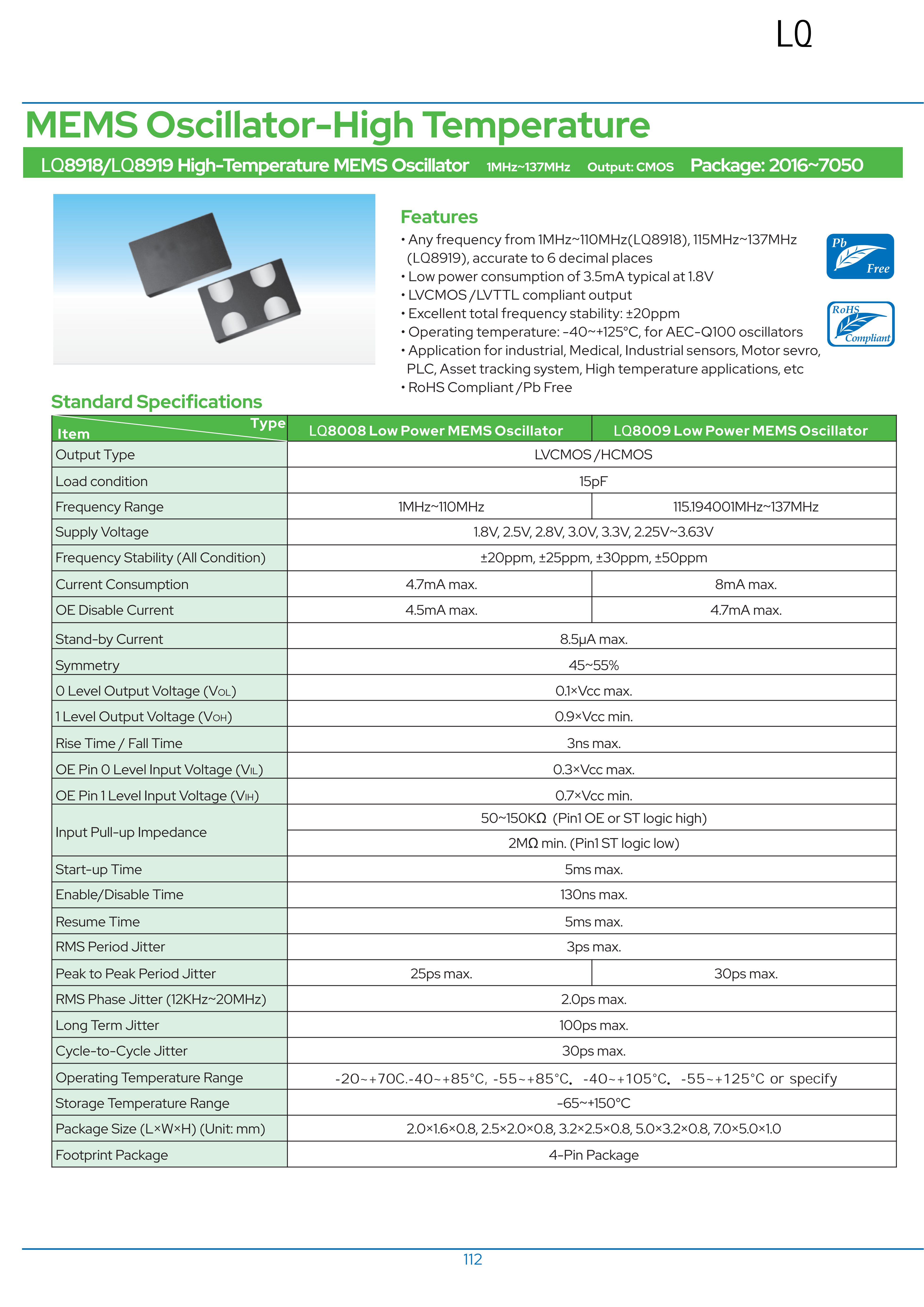AEC-Q100振荡器的工作温展: -40“+ 125C