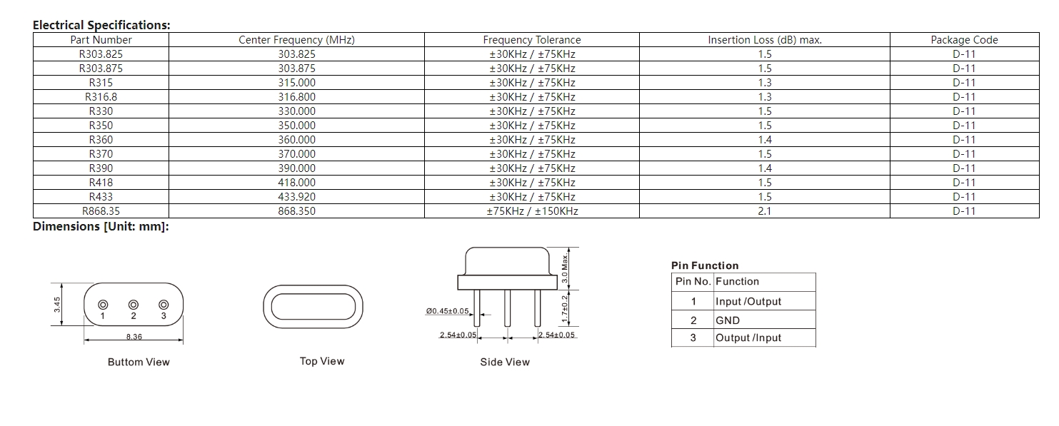 2. DIP金属外壳封装尺寸为0.36×3.45×3.0mm