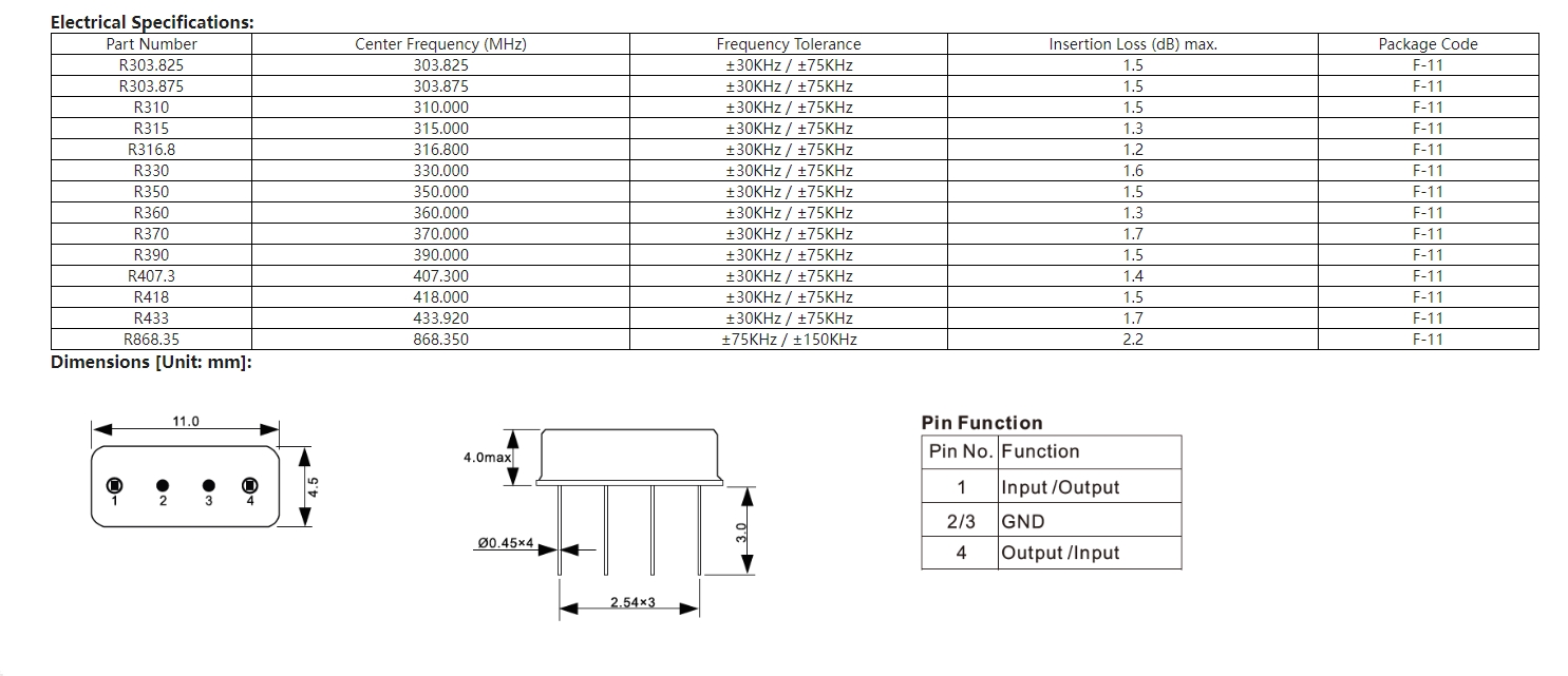 F-11声表面波谐振器